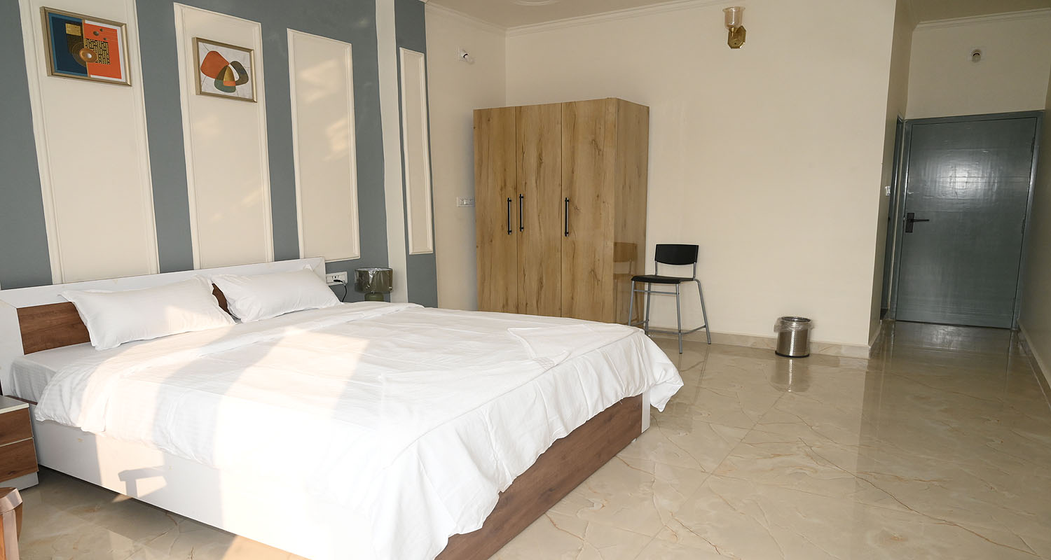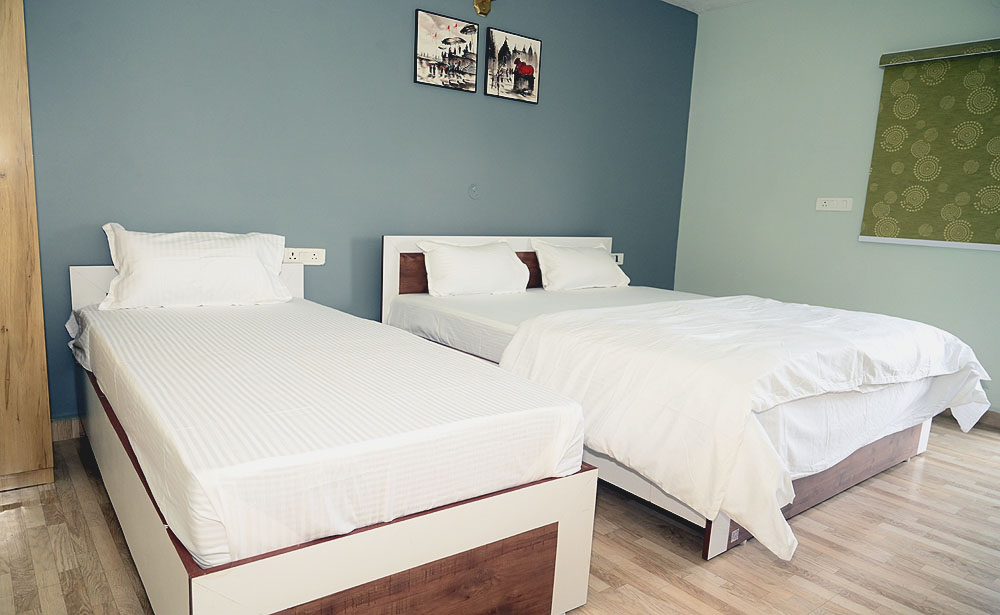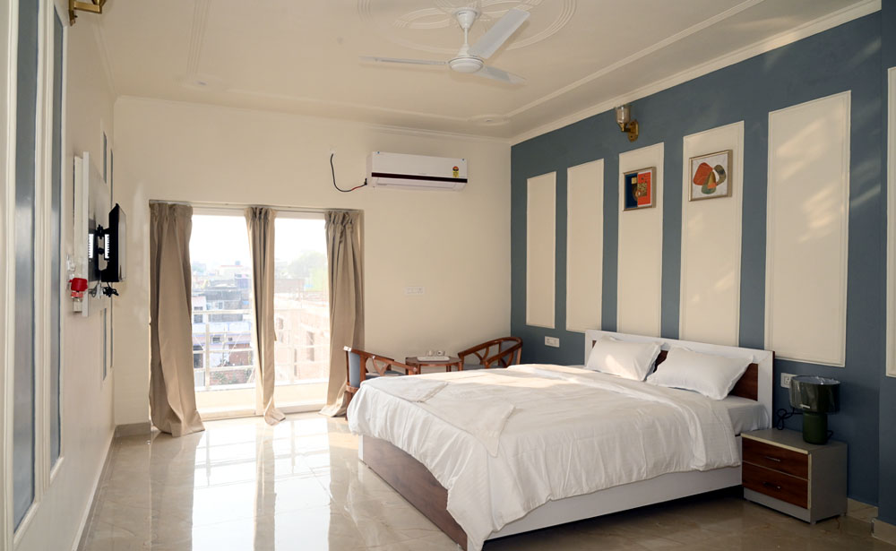 Modern-day traveller, these rooms have been thoughtfully designed with space efficient straight line furniture and comfortable beds with all modern day amenities, All rooms have a balcony providing a great view of the Bodhgaya Temple.
