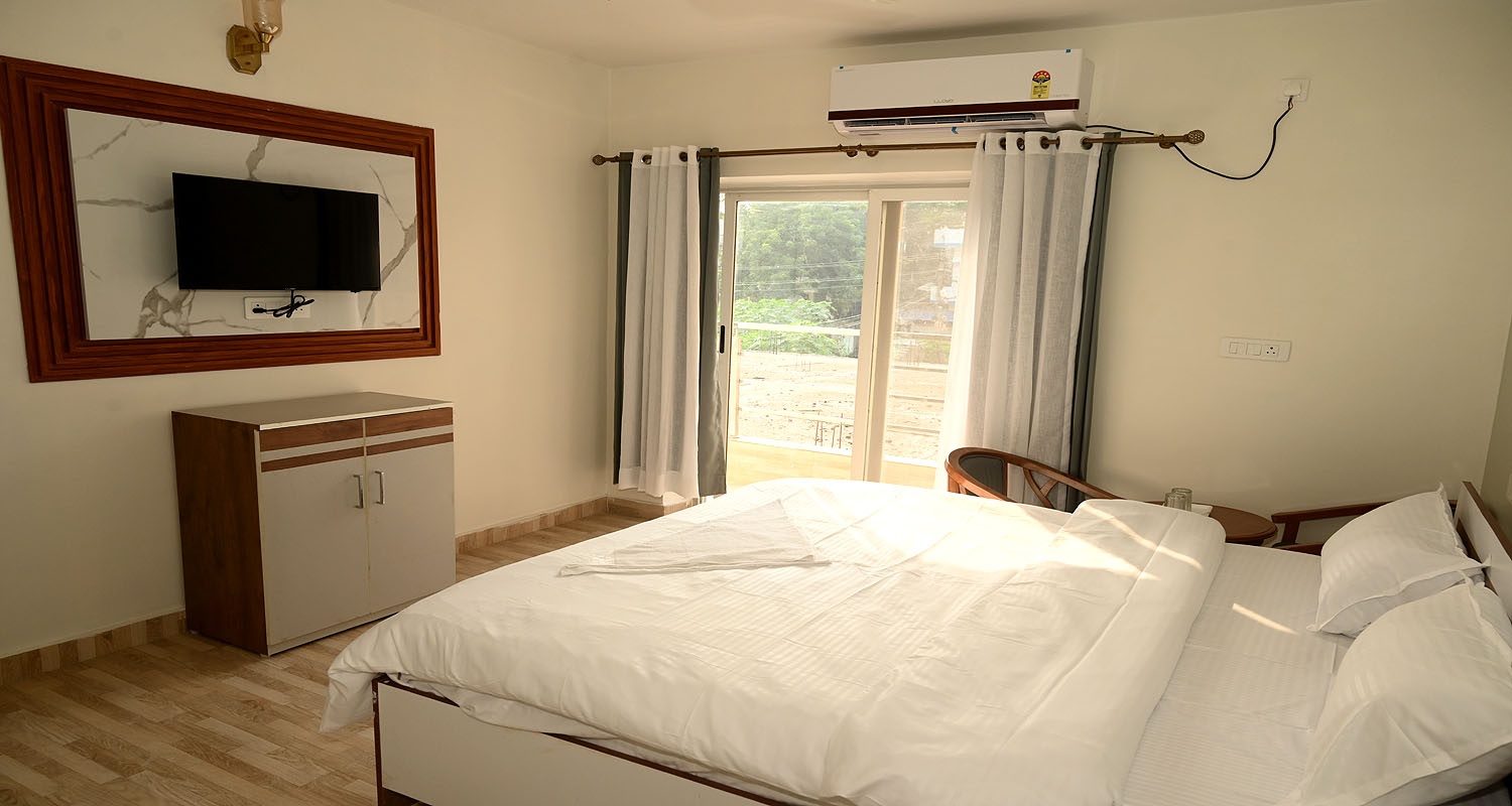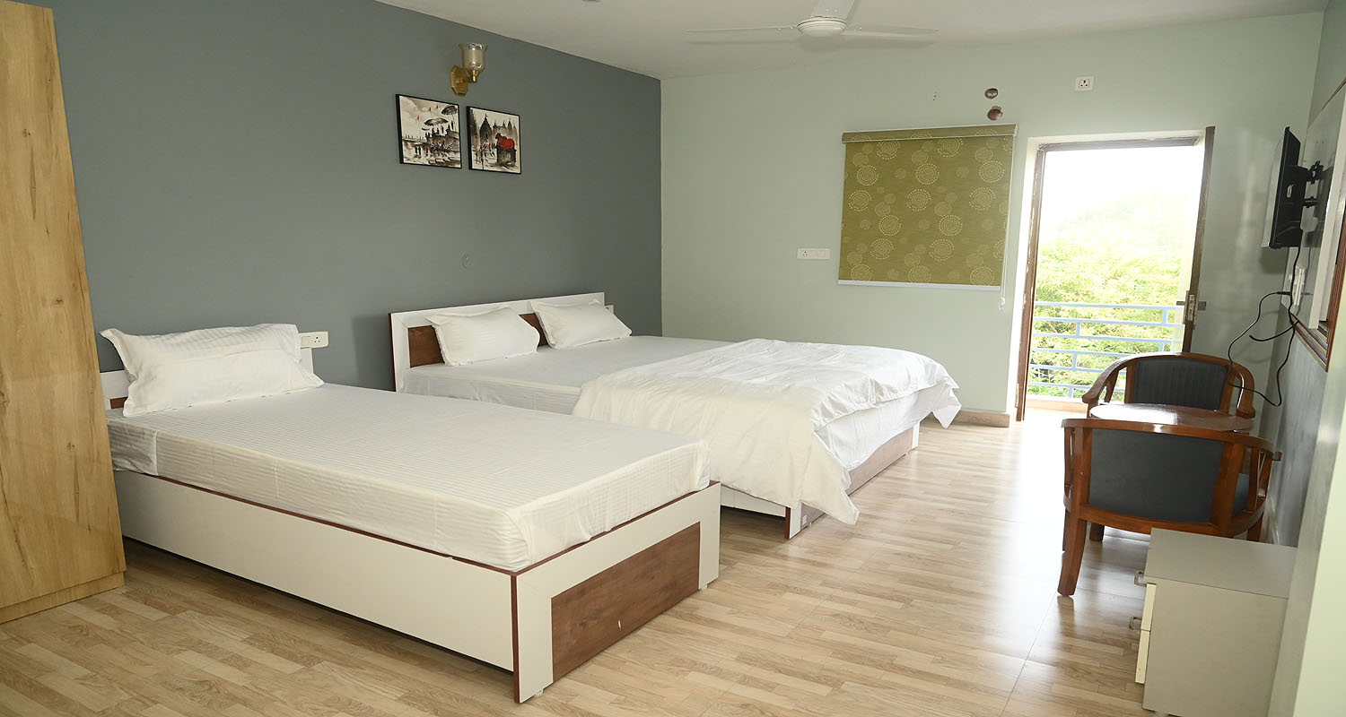 Modern-day traveller, these rooms have been thoughtfully designed with space efficient straight line furniture and comfortable beds with all modern day amenities, All rooms have a balcony providing a great view of the Bodhgaya Temple.